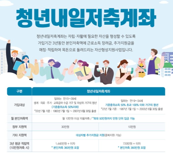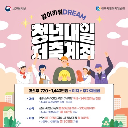 청년내일저축계좌는 저소득 청년들이 매월 일정 금액을 저축하면 정부가 추가로 지원금을 더해 목돈을 마련할 수 있도록 돕는 자산형성 지원 사업입니다. 안정적인 경제적 기반을 마련하고자 하는 청년들에게 매우 유용한 제도입니다.